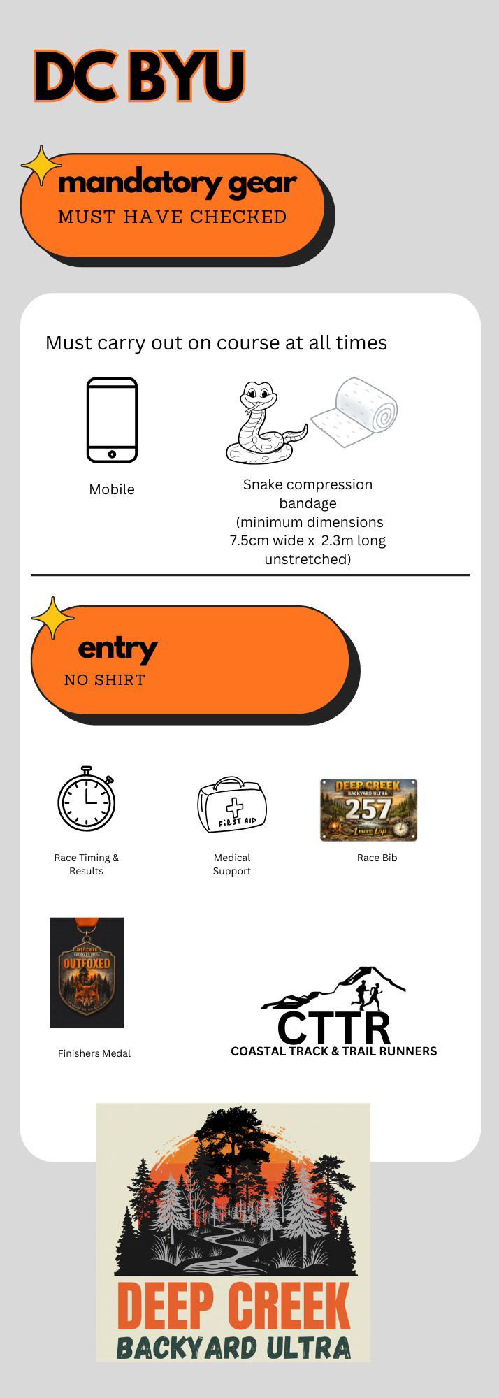 Merch Table: Pick up any gear you have purchased with entry. You will also be able to purchase mandatory gear and event shirts. [visa / eftpos available / cash]