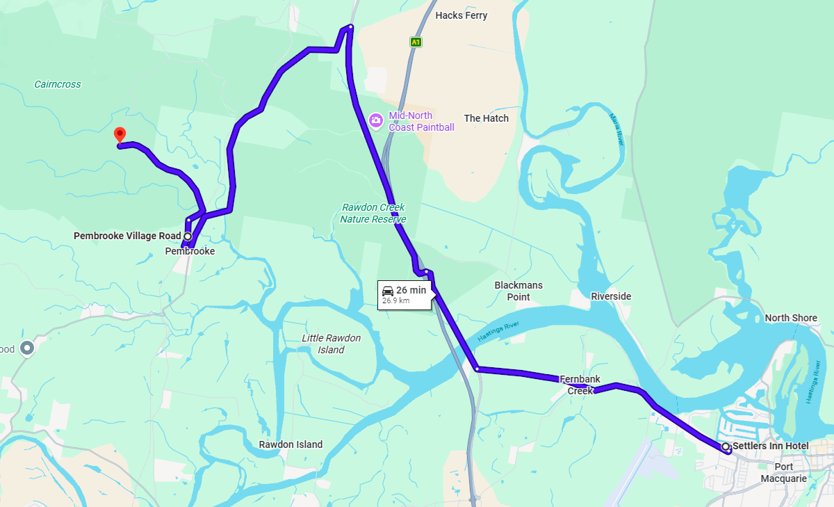ONLY via Pembrooke Village Road, to Tower Road, Pembrooke [DON'T USE REID's Road)
